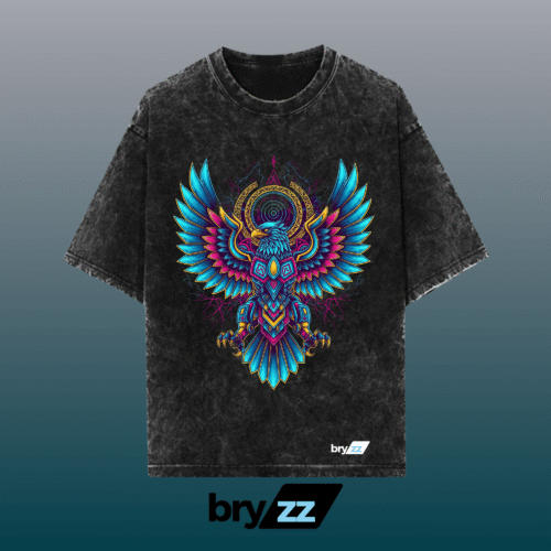 Skybreaker represents breaking ceilings, cutting through barriers, and shattering the cages 🕊️ of society. Featuring a cybernetic eagle 🦅 forged in neon geometry, its wings slice through silence, and its gaze challenges the world to move. This tee is for those who don’t follow the sky — they claim it 🌌.